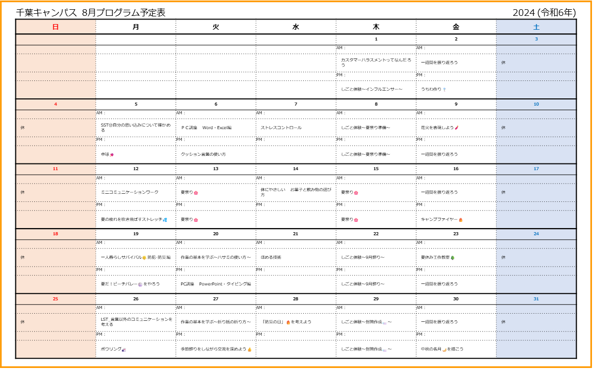 【自立訓練】8月のプログラムもイベントたくさん【千葉キャンパス】