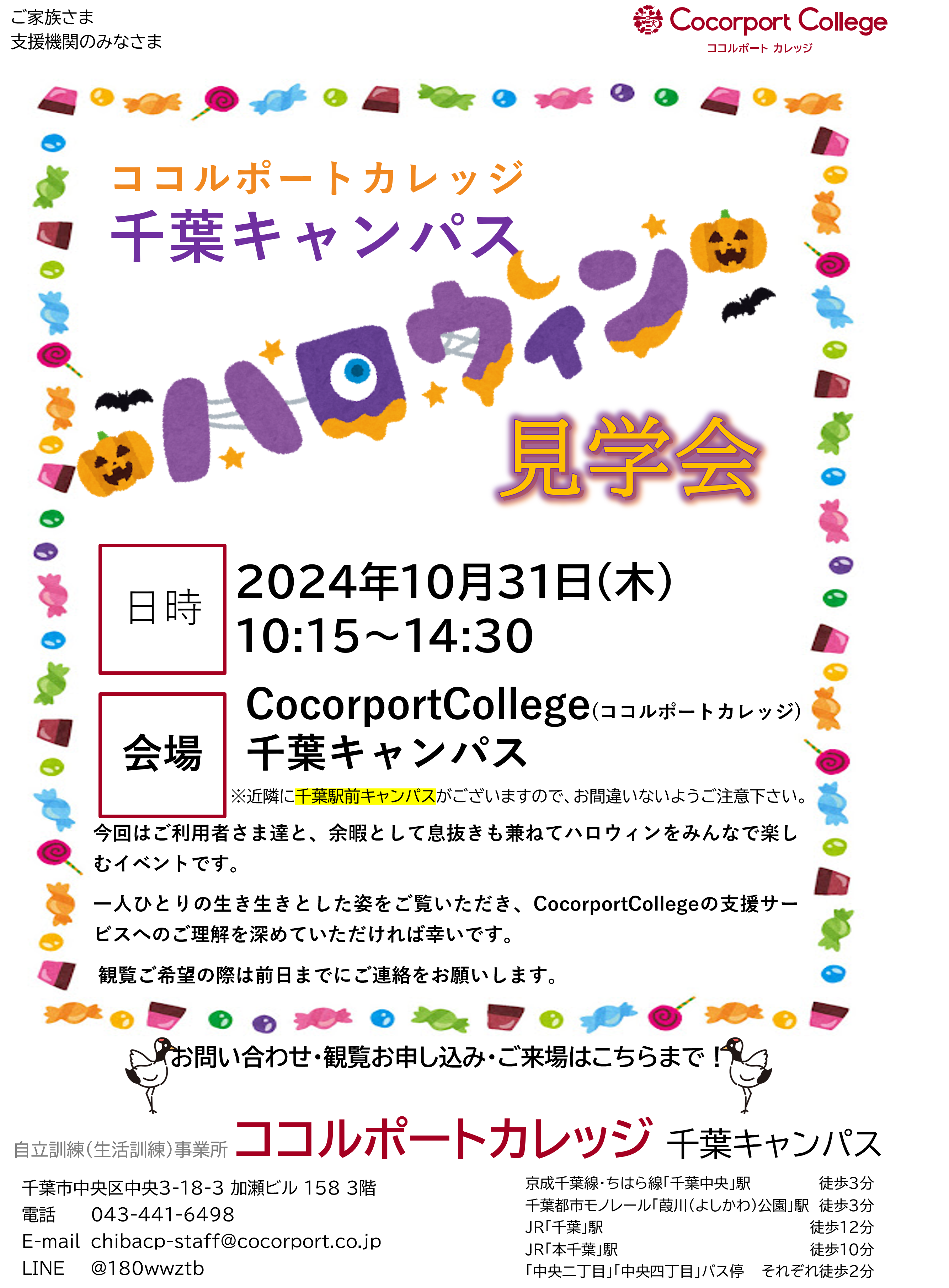 この日は千葉キャンパスが気になっている方、保護者様、関係機関名の方もご参加いただけるイベントになっております🎵