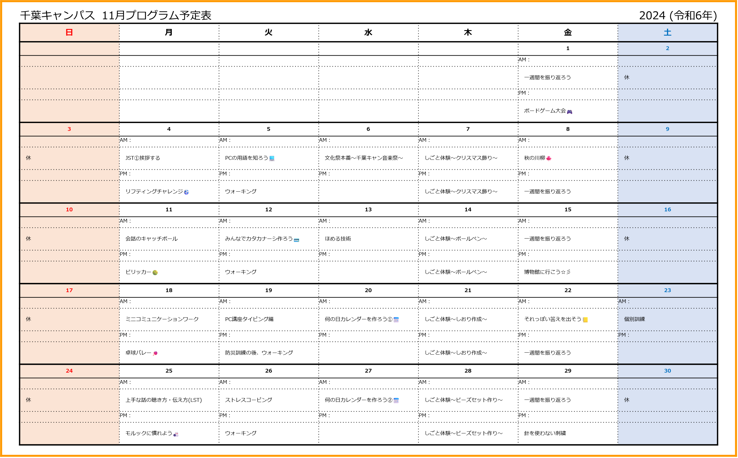 【自立訓練】11月のプログラム表公開🌟【千葉キャンパス】
