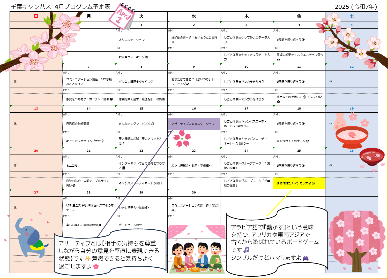 【千葉キャンパス】🍀4月のプログラム大公開🍀【自立訓練】