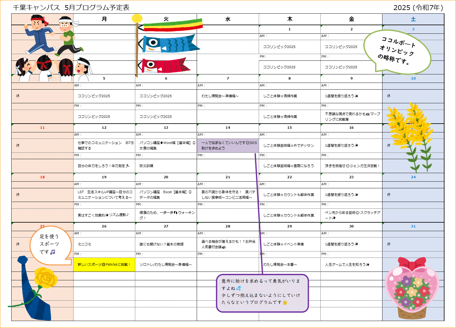 【千葉キャンパス】🎏5月のプログラム公開🎏【自立訓練】