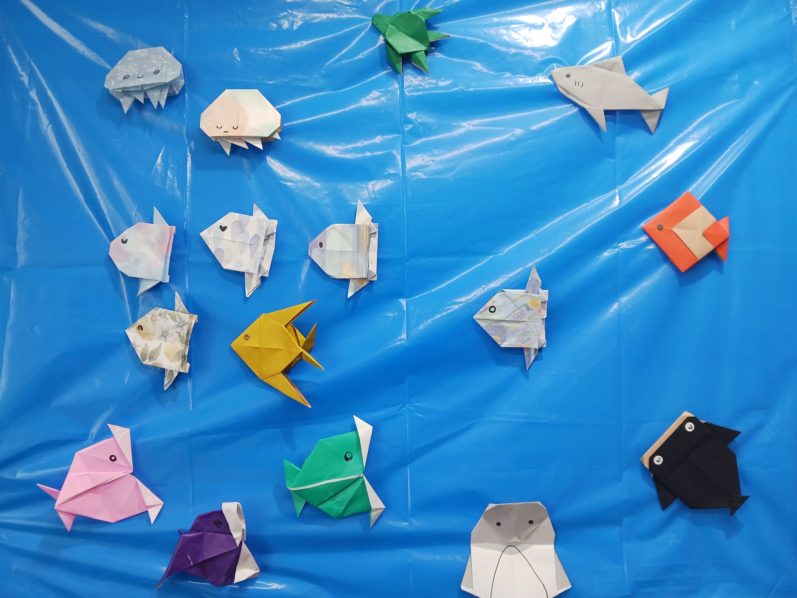 スタッフがペンギンを折ったのですが魚より大きくなってしまいました🐧