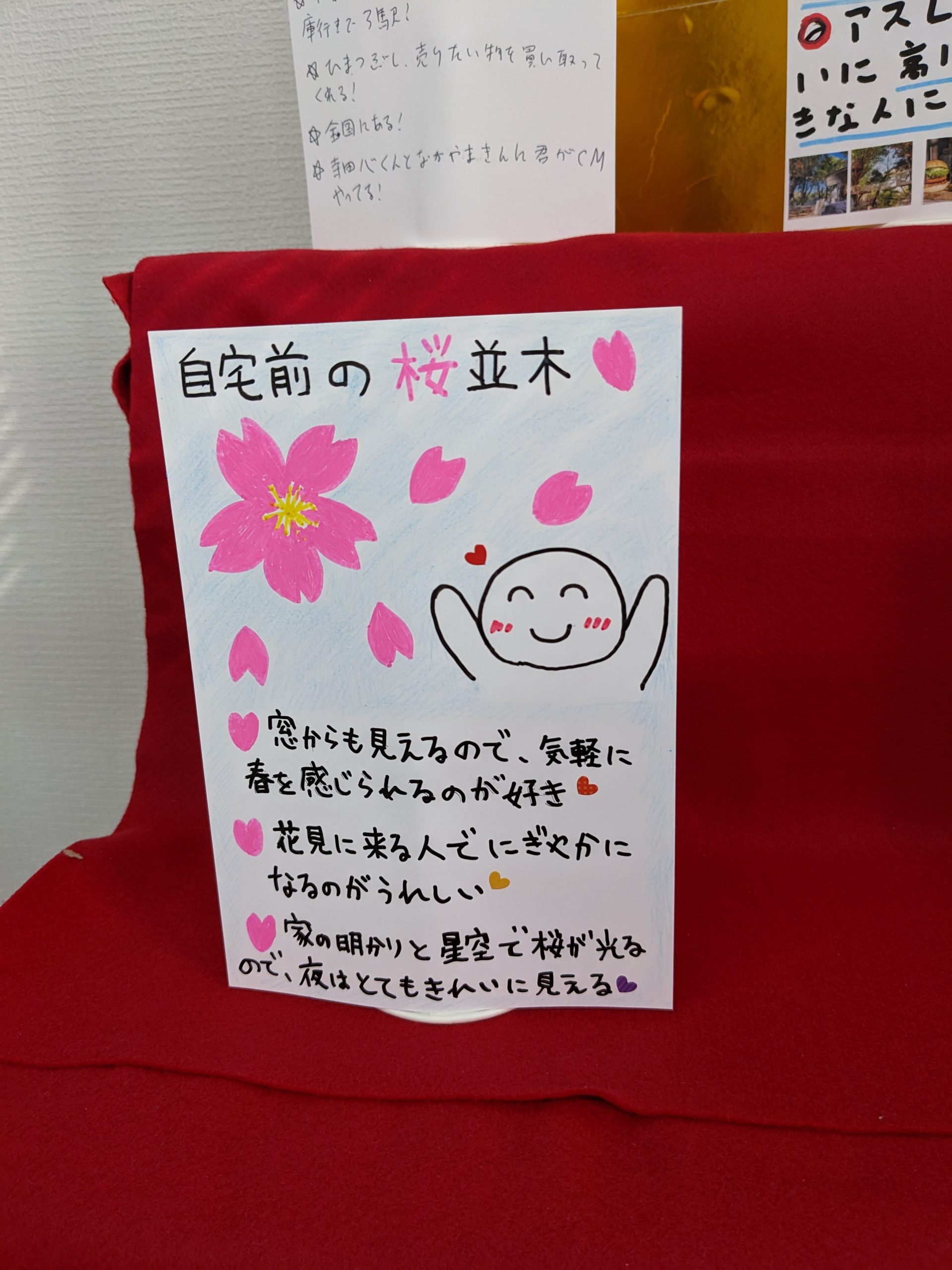 桜の季節に合わせて紹介してくれたのが、メンバーさんの家から見える「桜並木」です。