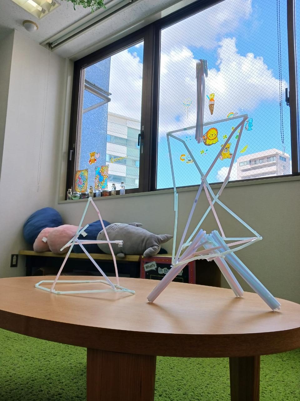 2チームに分かれストローとストローをつなぎ合わせて、うまく形を作って組み立てていき、最終的に高いタワーを作ったチームの勝ちとなります!チームのメンバーさん同士で相談し、作戦を練ってタワーを建てていきました🗼