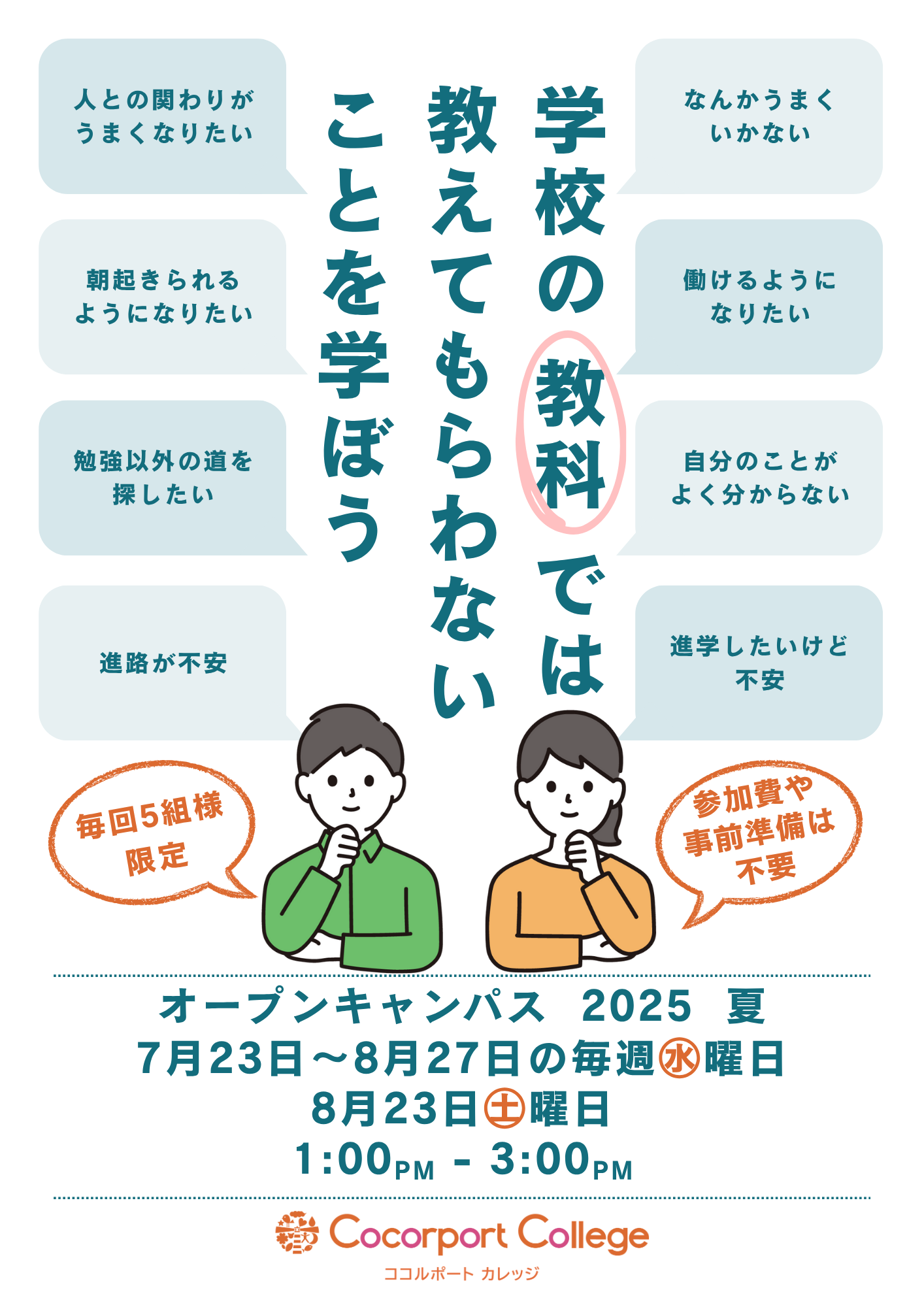 ★7/23~8/27の毎週(水)曜日 & 8/23(土)曜日 13:00~15:00☆
