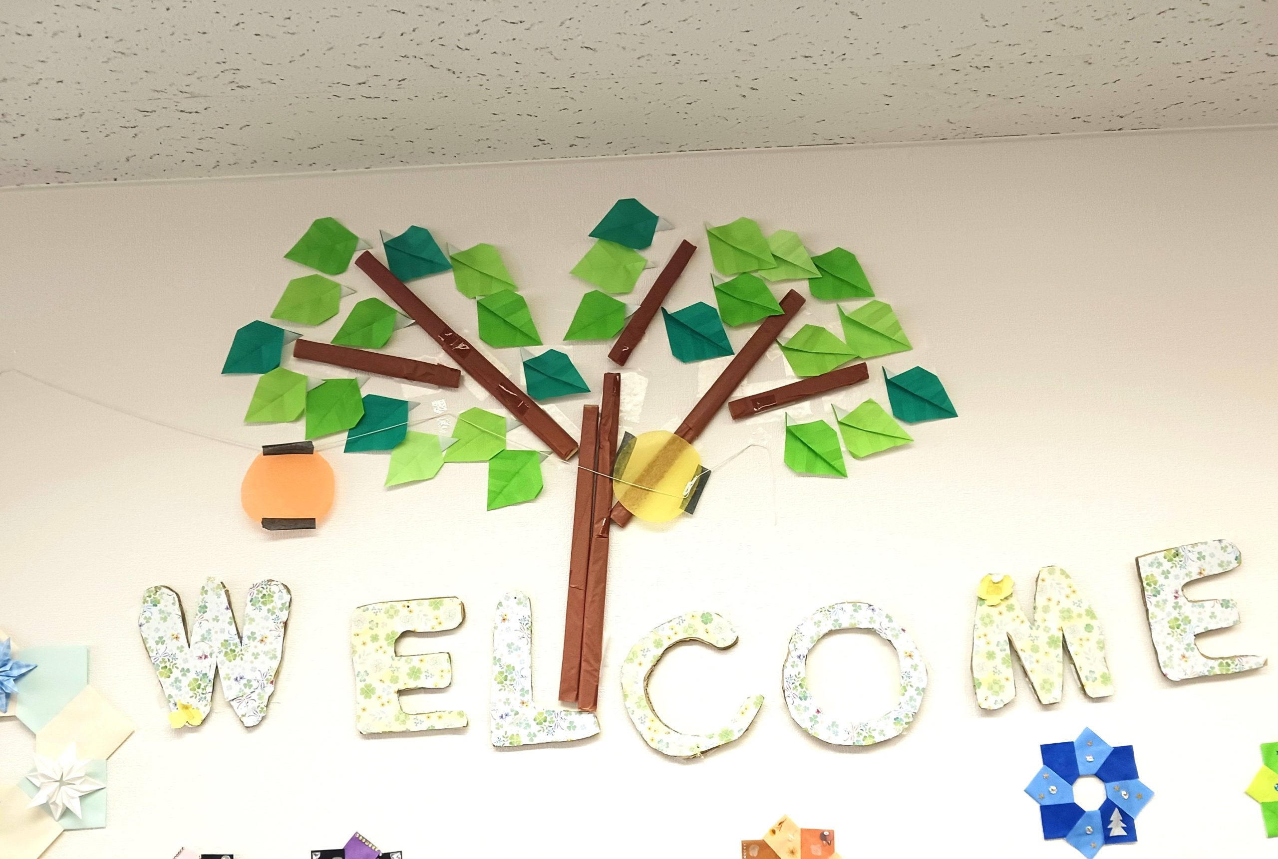 最初のプログラムは千葉駅前キャンパスの1周年を祝おうというプログラムで装飾をして