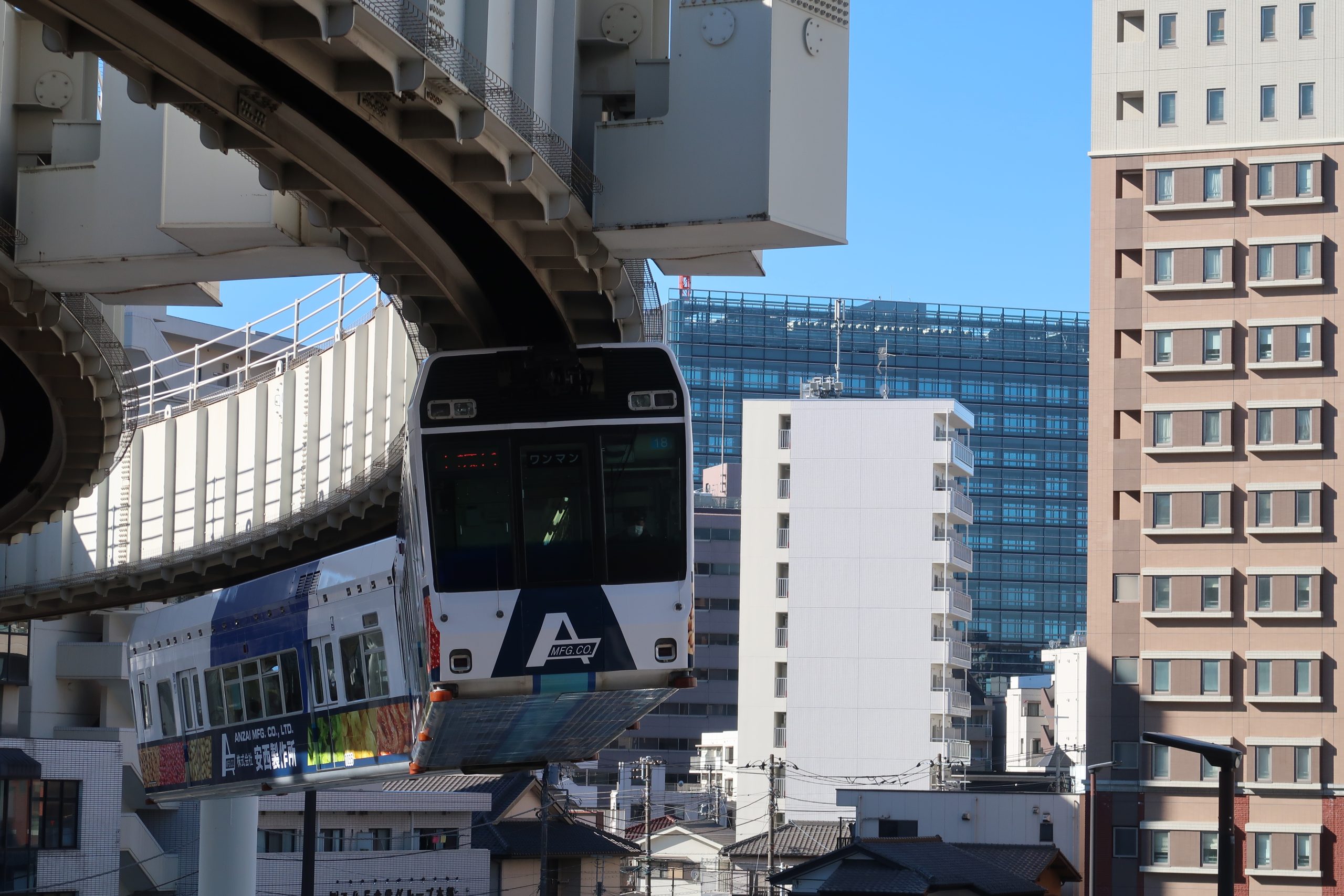 モノレールがカーブを曲がって近づいてくる光景は、迫力があってワクワクします!!!