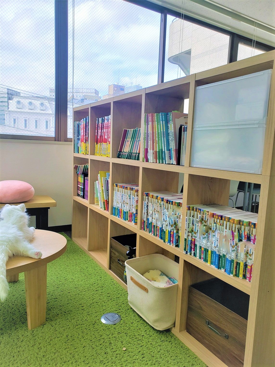 千葉駅前キャンパスには、たくさんの本が収納できる本棚があります📚