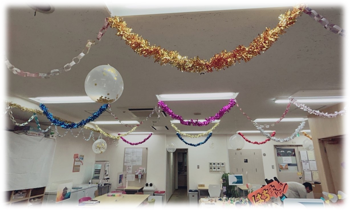 キャンパス全体を飾り付けしてとっても華やかになりました!