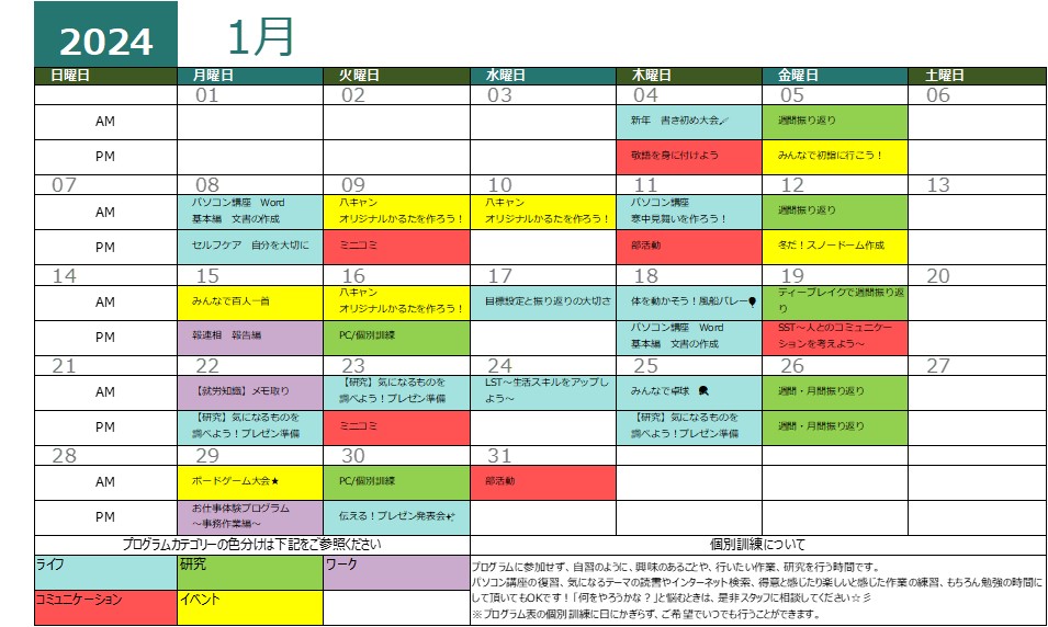 ⛩️1月のプログラム表⛩️