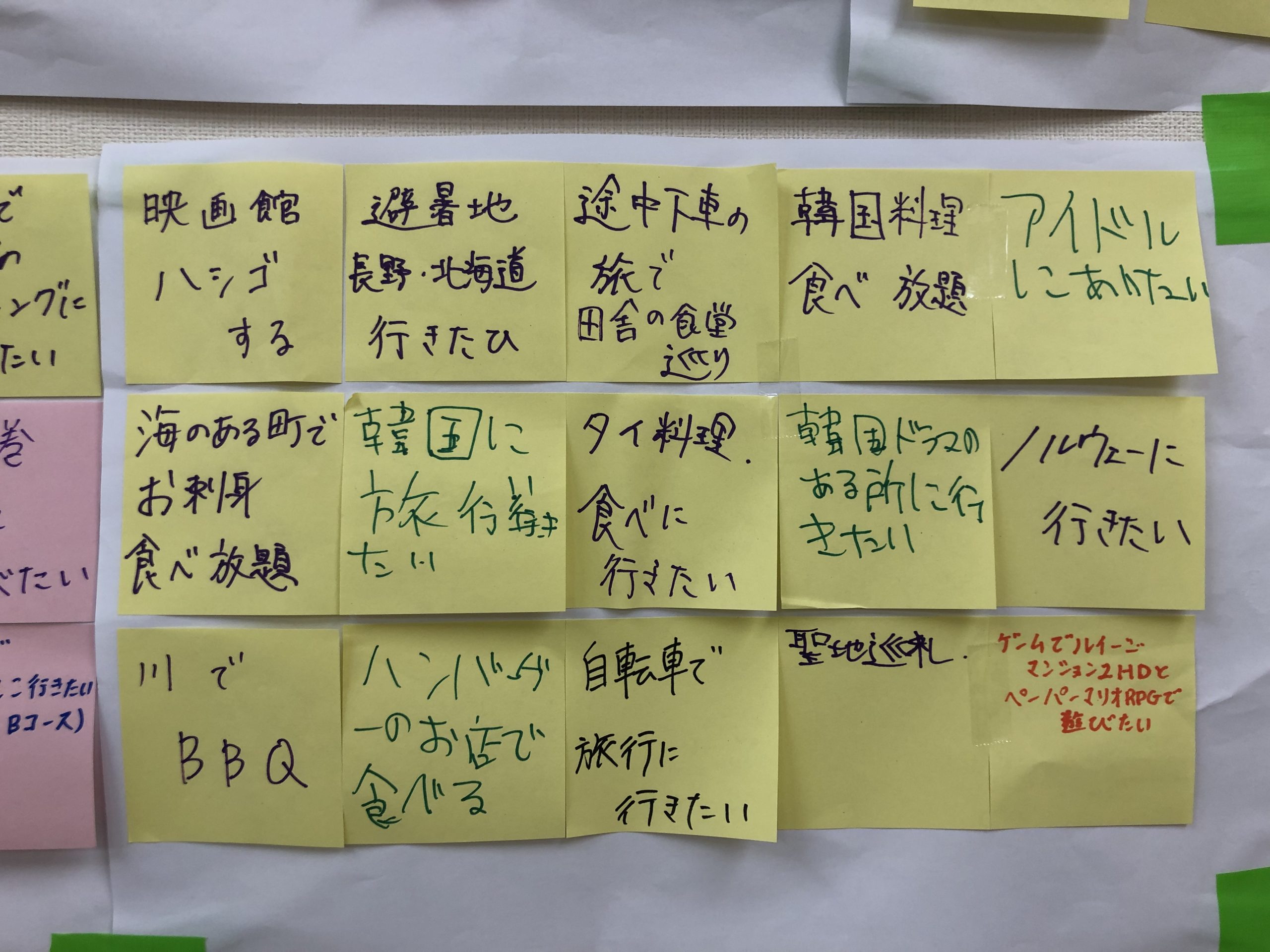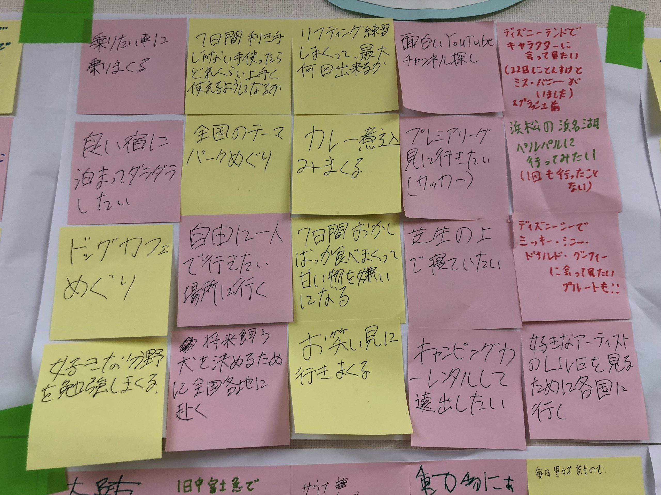 そんな中、キャンパスでは、一週間休みがあったら何をするか皆さんで意見を出すプログラムを行いました!