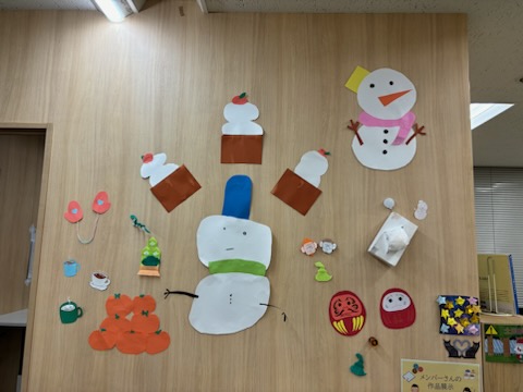 毎月「壁面飾りつけ」というプログラムでメンバーさん考案の飾りつけをみんなで一緒に作るプログラムがあります。2月はどんな飾りつけになるかはお楽しみです🤫