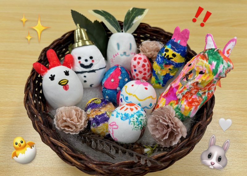 八王子駅前キャンパスでは一足先にイースターエッグを作ってみました。メンバーさんそれぞれの味が卵に表現されているので、是非ご覧にいただければと思います!