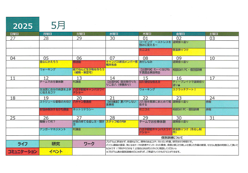 そして最後に5月のプログラム表がリリースされたのでお知らせいたします。