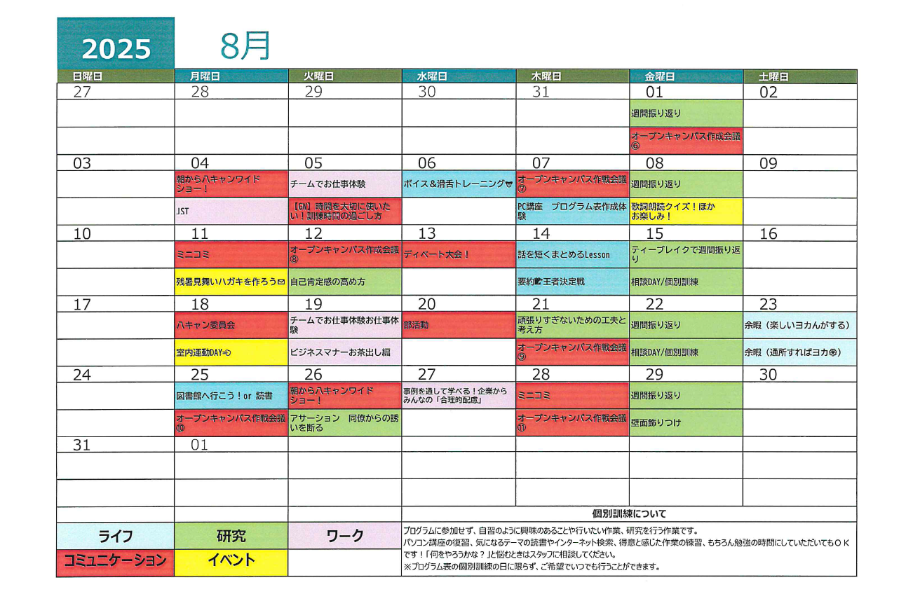 【八王子駅前キャンパス】土曜日のキャンパス🌟&8月のプログラム表【自立訓練】