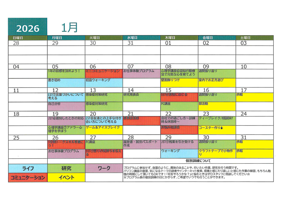 1月のプログラム表がリリースされたのでお知らせいたします。