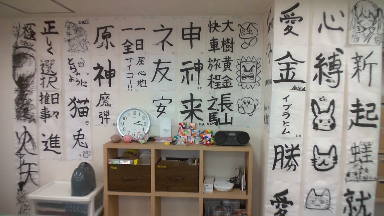 まずは書初めのご紹介から!筆の赴くまま、自由な発想で!