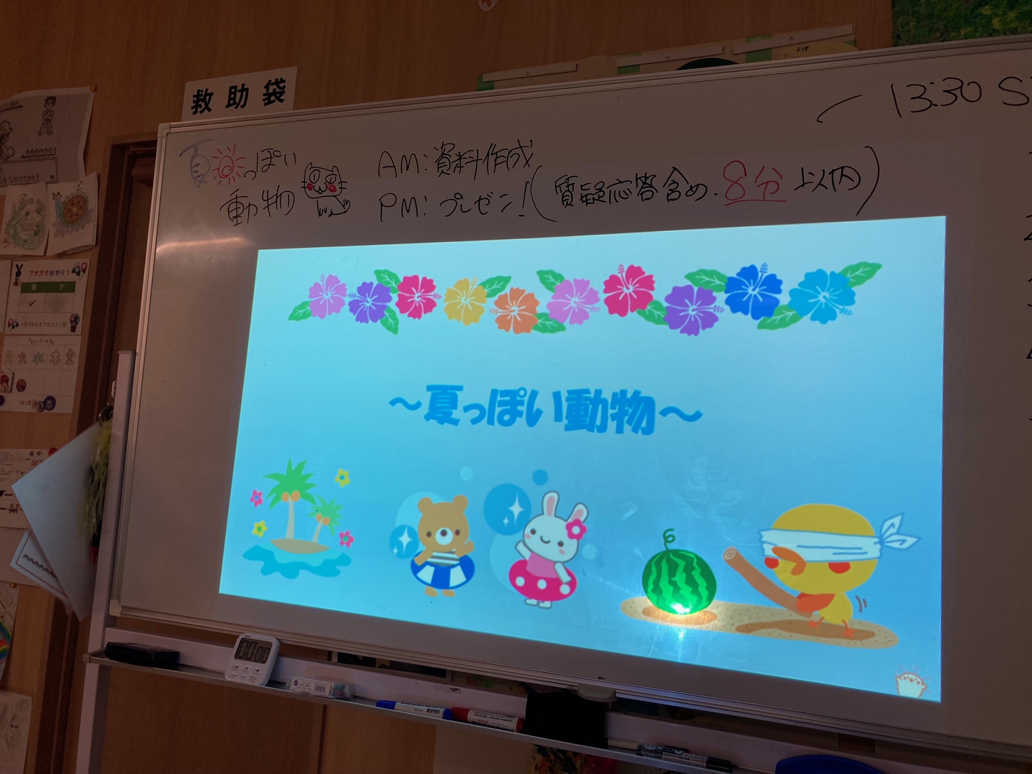 先日、八王子駅前キャンパスでは「🍉夏っぽい動物🐧」をテーマに一日かけての資料作り&プレゼン大会が開催されました。
