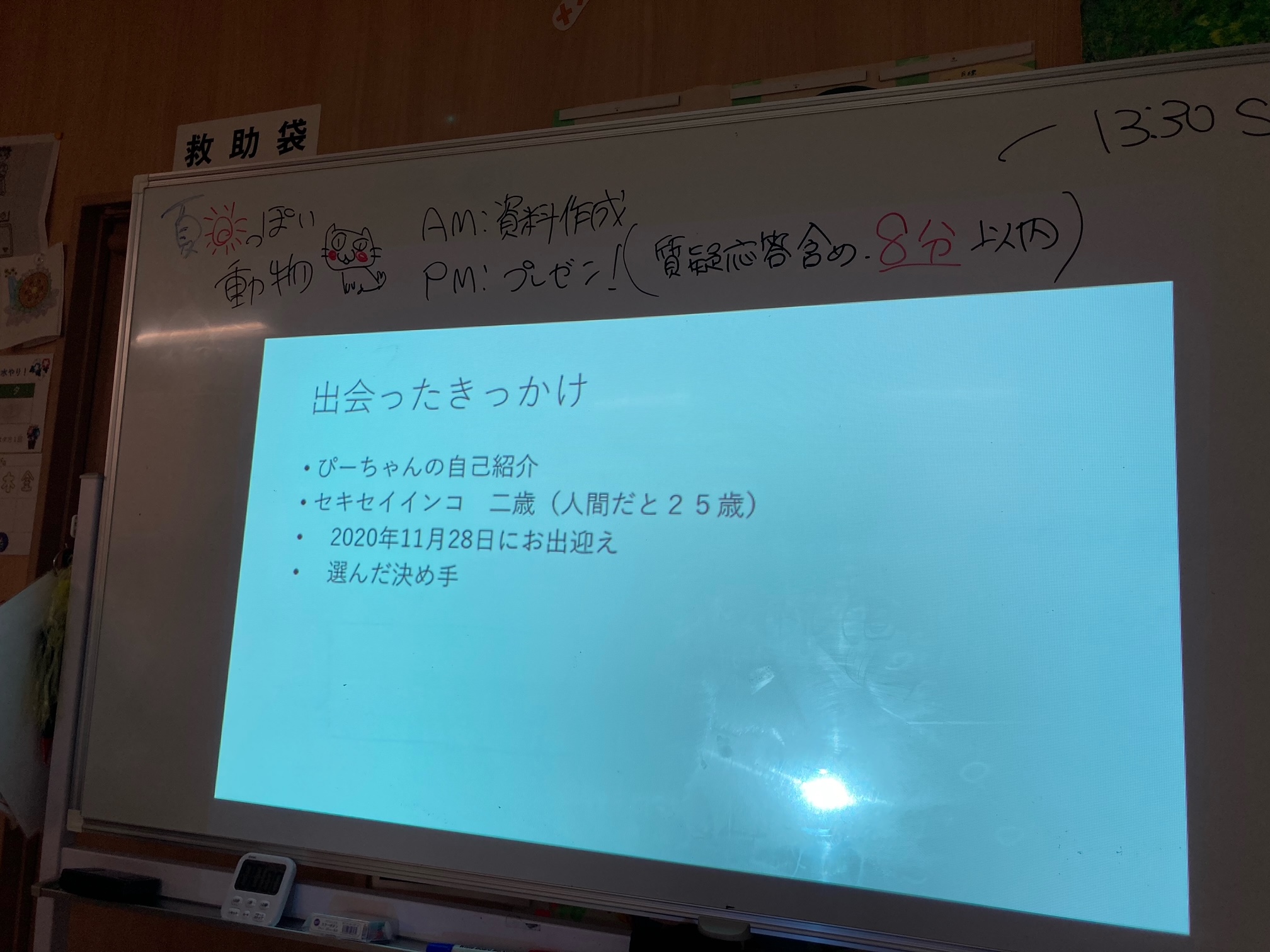ご自身のペットについてのプレゼンをされた方も!写真が載せられないのが残念ですが、「ぴーちゃん」とっても可愛い夏色のインコさんでした!!!