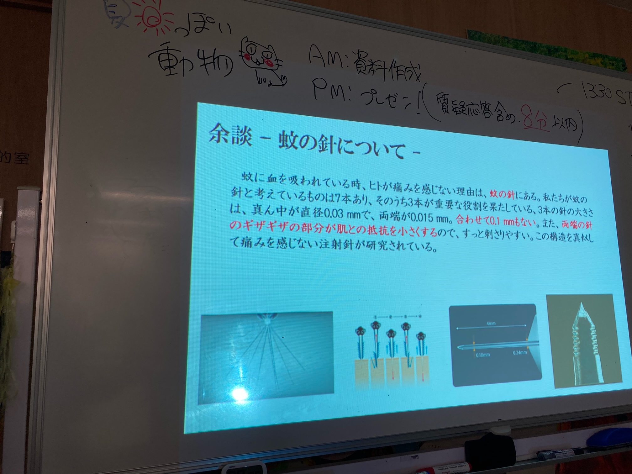 まさかの、身近すぎるほど身近だが思いつきもしない…「蚊」についてプレゼンされた方もいらっしゃいました!!!非常に勉強になる内容で、参加者みなさん食い入るように聞いていました!