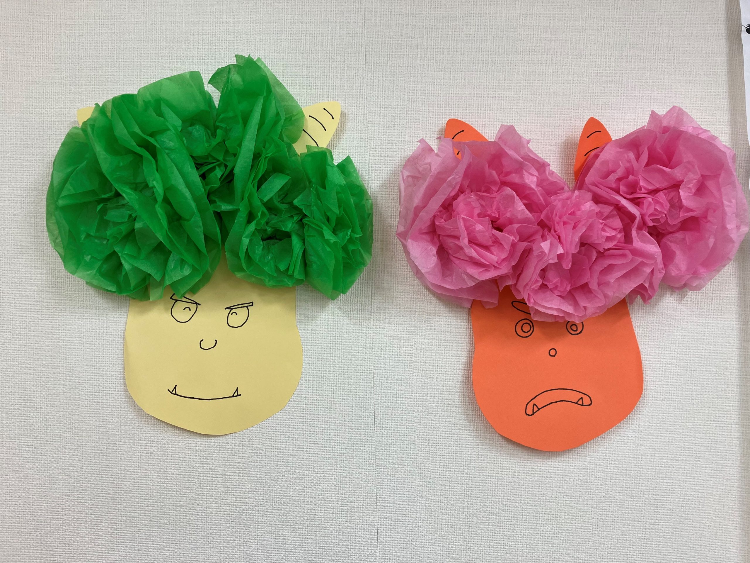 おはながみを使った可愛らしい鬼や