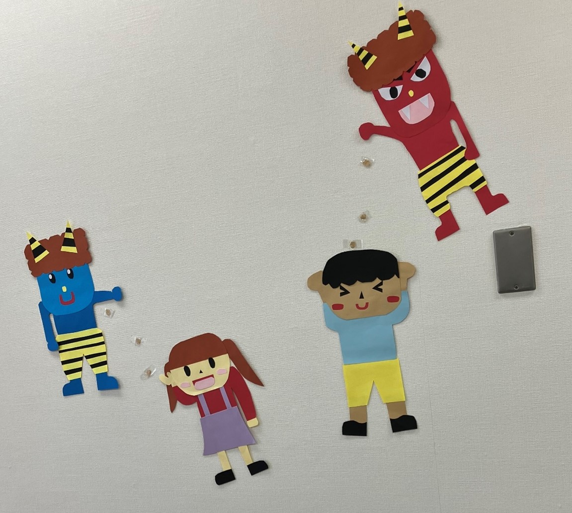 画用紙で豆まきの様子を表現していただきました!