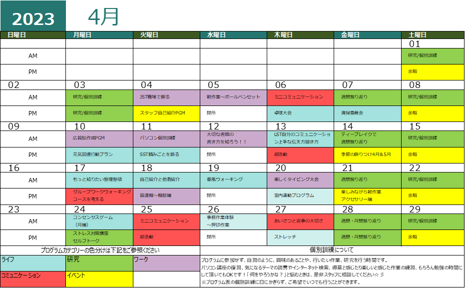 気になるプログラムがありましたら、是非見学にいらしてくださいね。