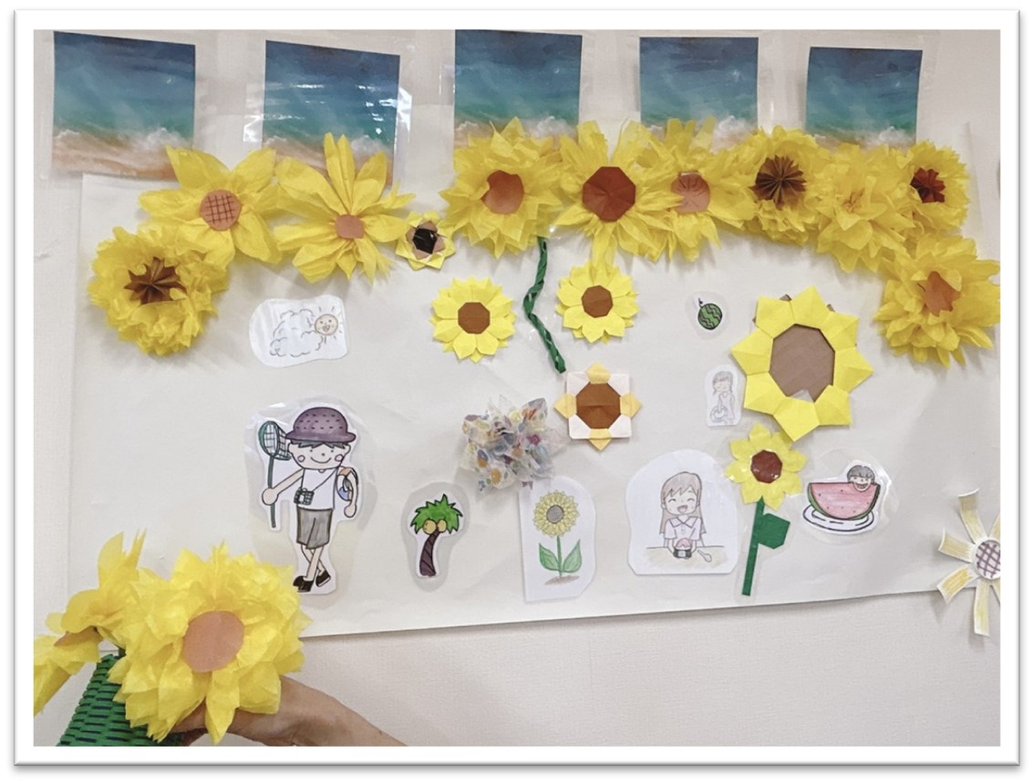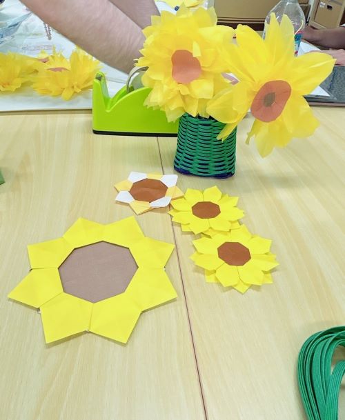 おはながみや折り紙を使った、様々な種類のひまわりが出来ました!