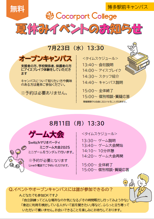 7/23にオープンキャンパスを開催します!今回は前回と違い「アイスブレイク」という謎の時間がありますねぇ~🤔