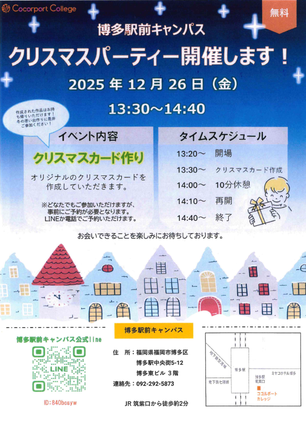 【博多駅前キャンパス】 🎁🎄クリスマスパーティー開催します🎄🎁