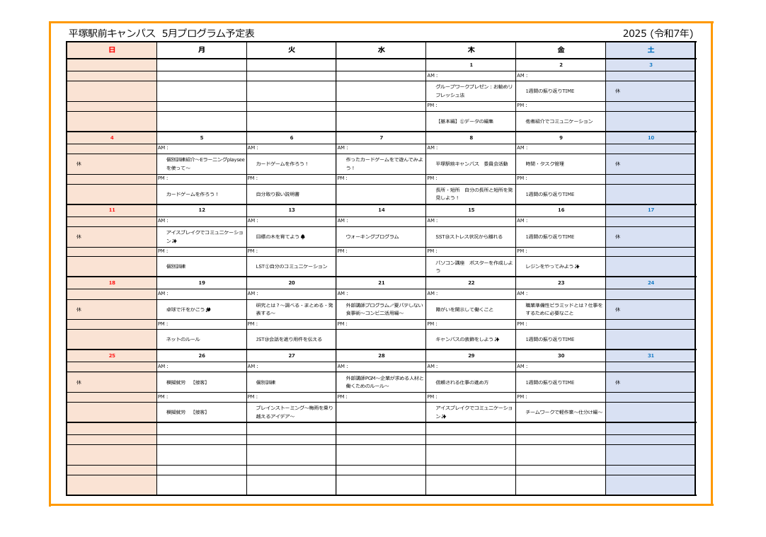 さて、今回は平塚駅前キャンパス5月のプログラム表を公開いたします!