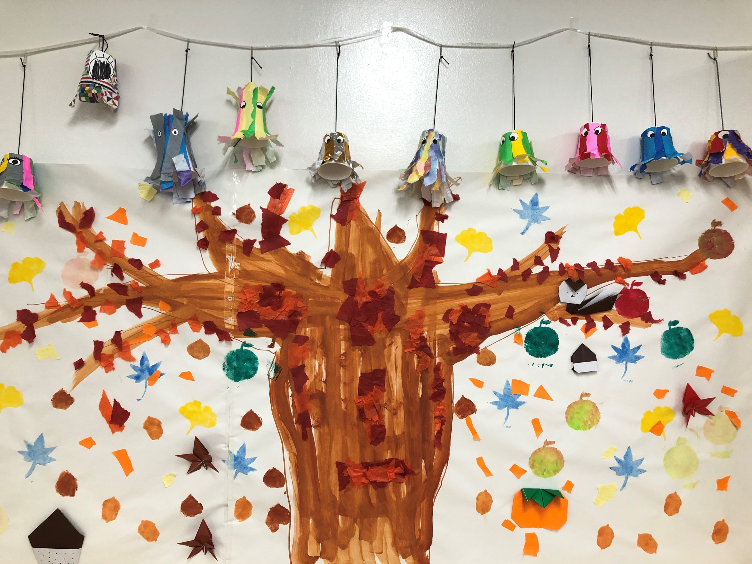 例えば「壁を装飾しよう!」。みんなでキャンパスの壁を秋🍁とハロウィン🎃をテーマに飾りつけました。