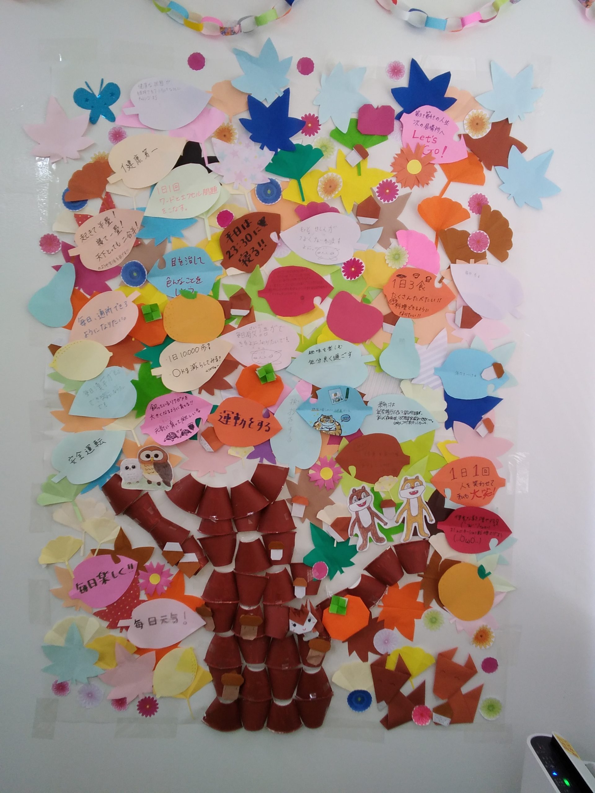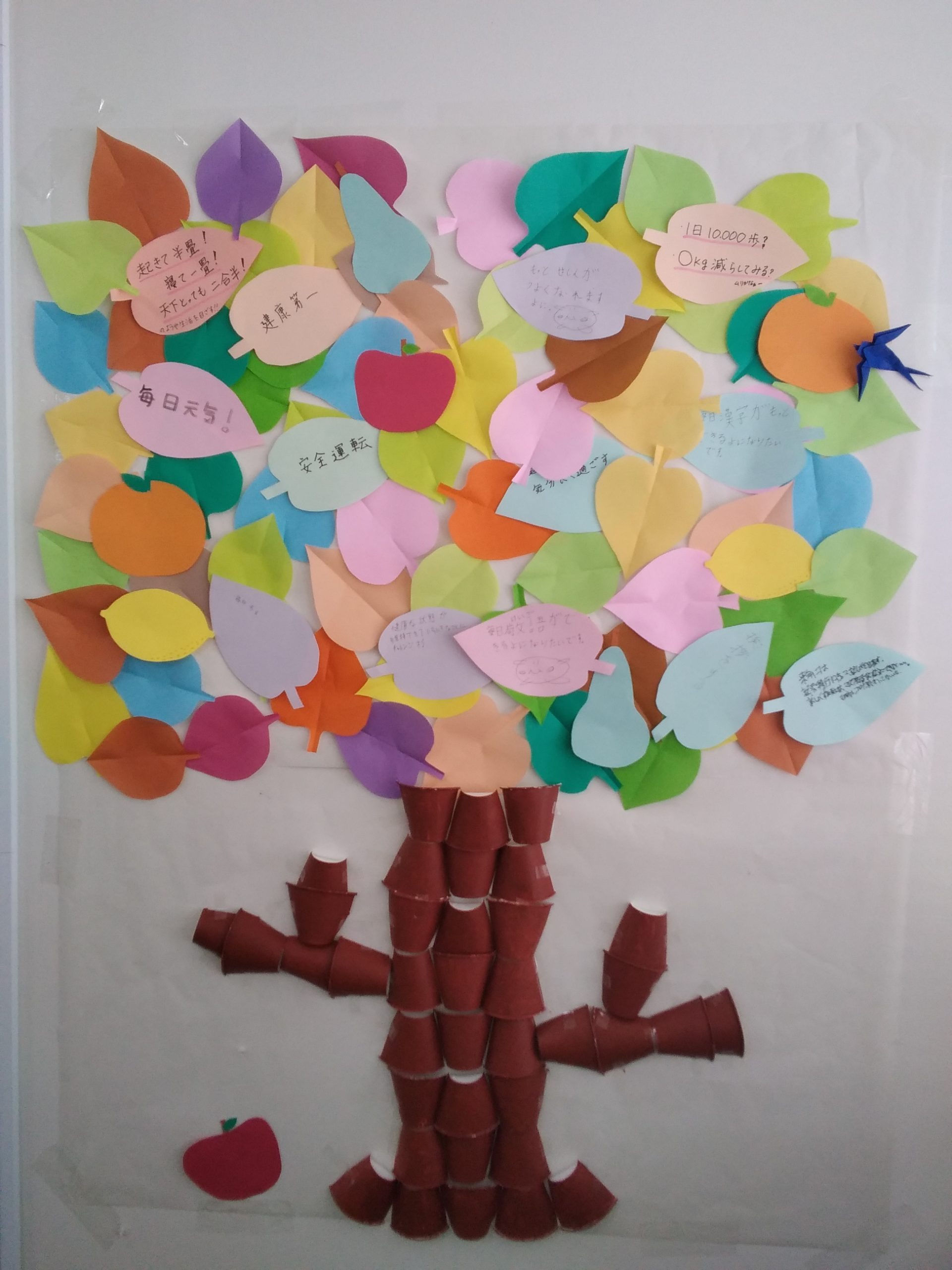 以前作った目標の木を、皆様の目標と共に秋の木に変身させました✨