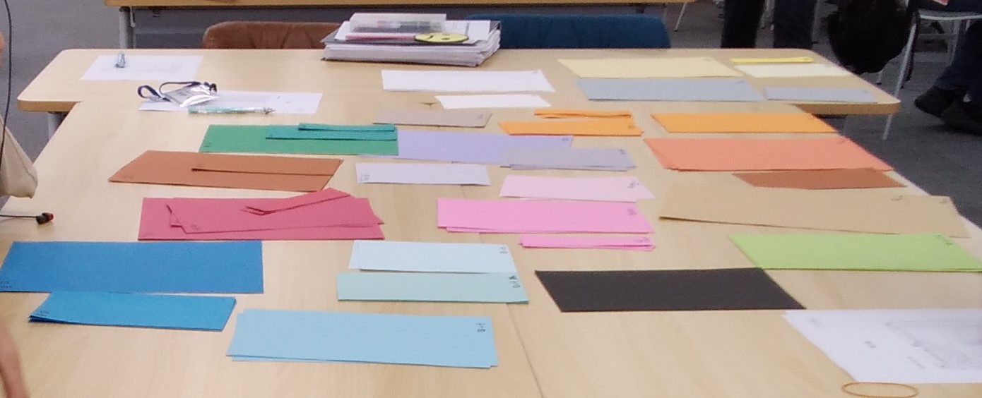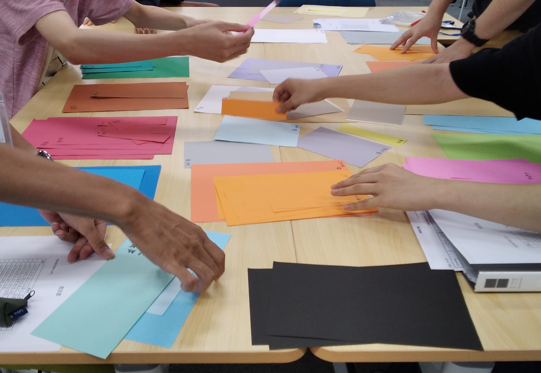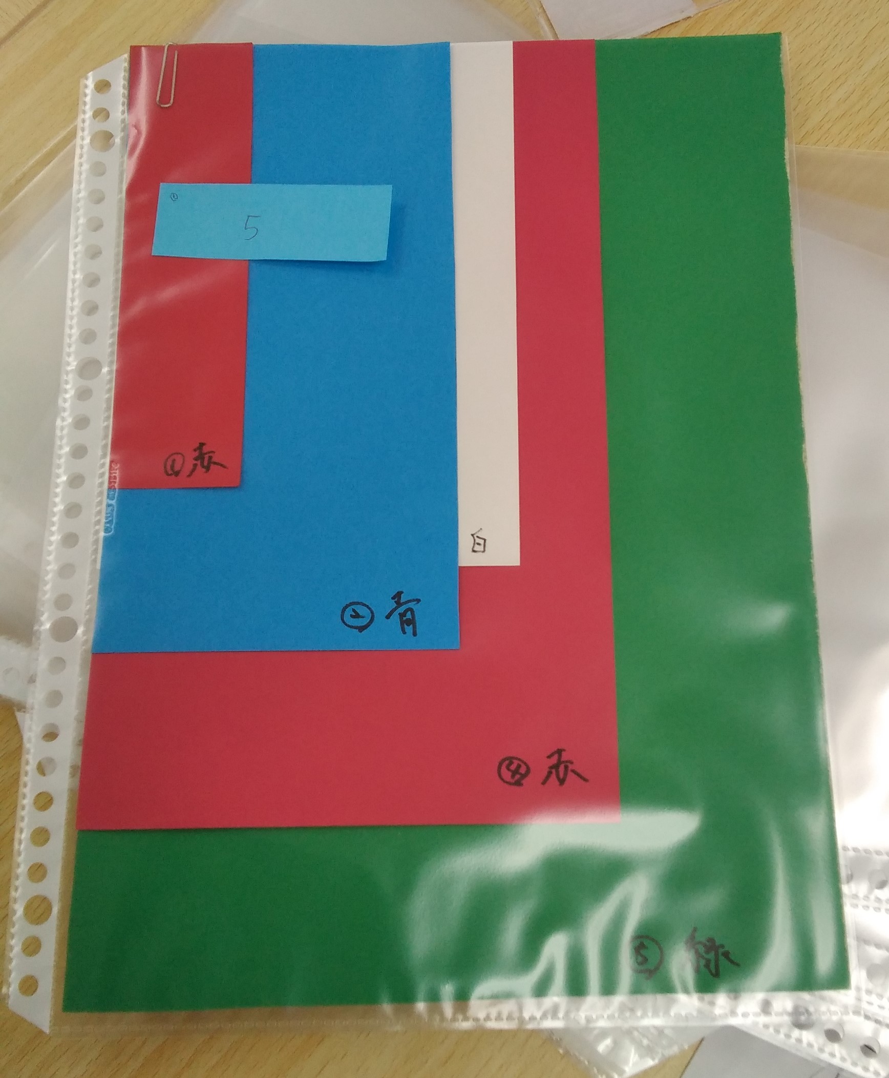 準備されたサイズ、色の違う紙を指示書通りに集めクリップで止めてリフィルに入れるという作業です。