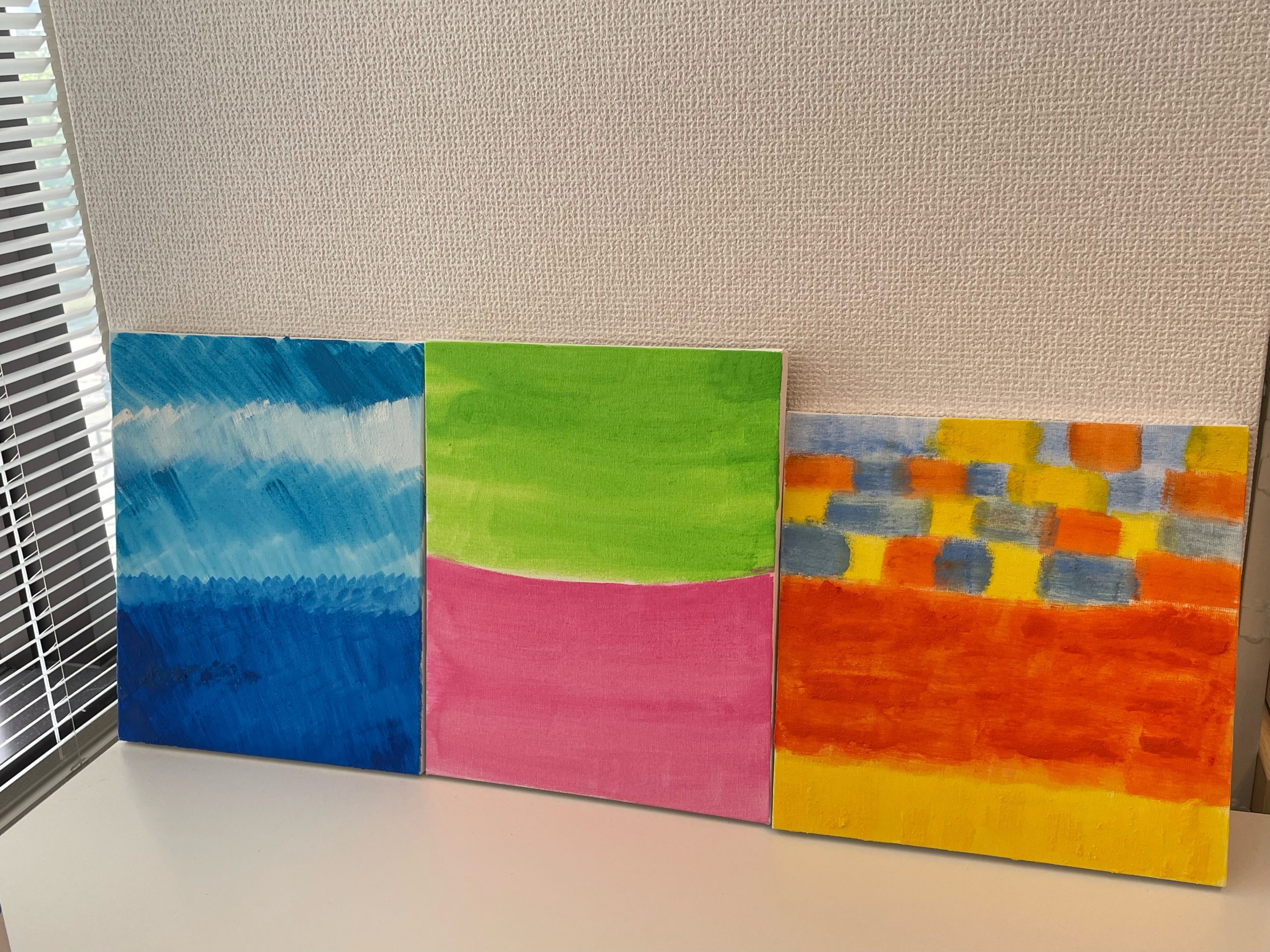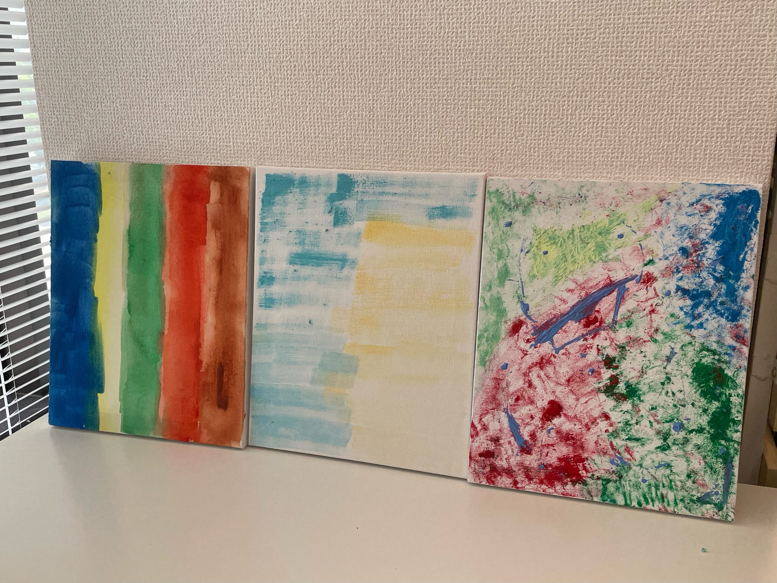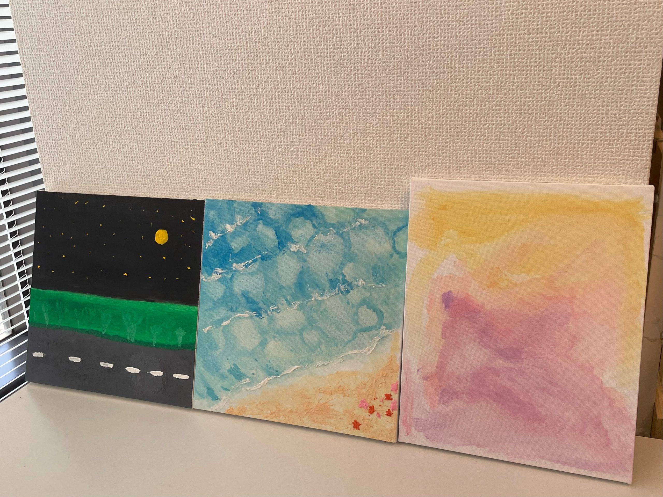 みなさん集中しながら、キャンパスに想い想いの色を重ねて素敵なアート作品が完成しました🪄