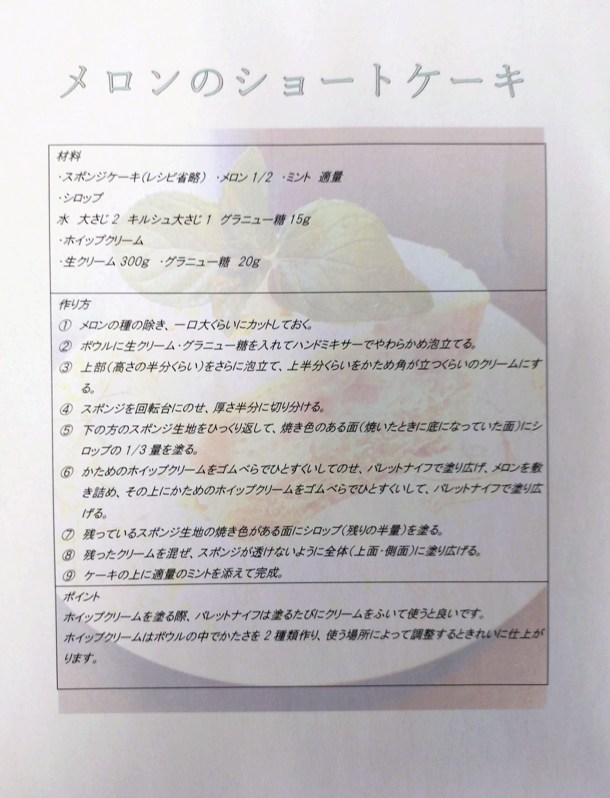 今回のブログに掲載しているのは、スタッフの調理したケーキのオリジナルレシピです!透かしの素材も実際のケーキです♪