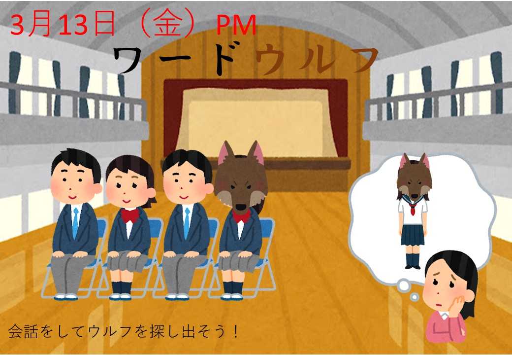 🌟3月13日㈮ PM:ワードウルフ・・・ゲームを通して楽しくコミュニケーションをとる余暇プログラムです