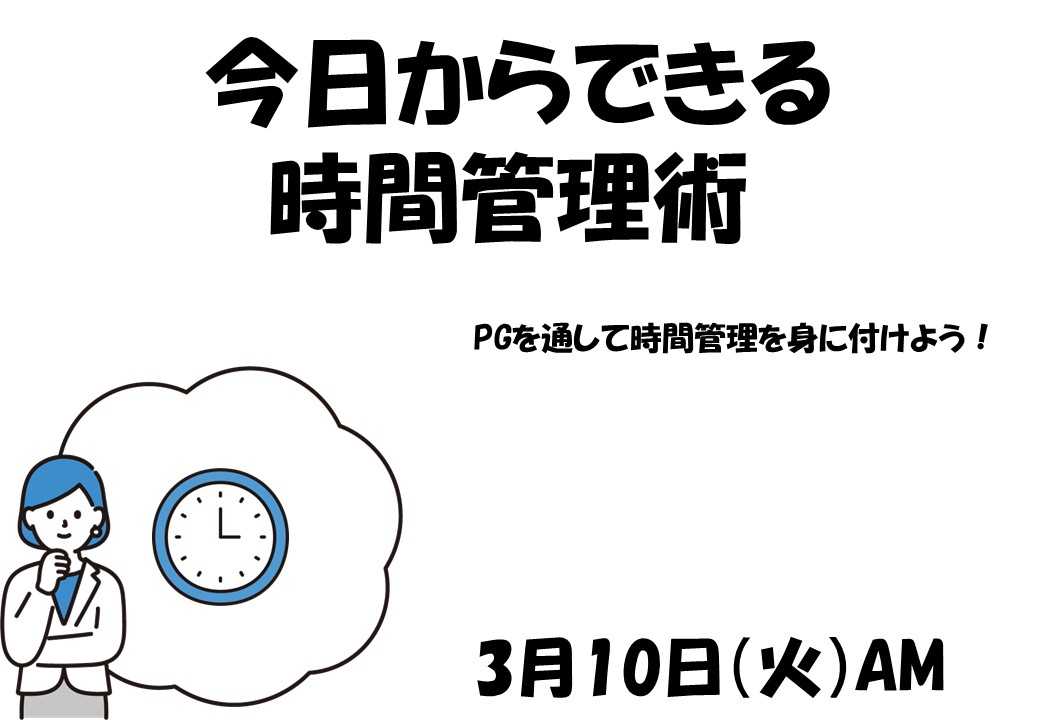 🌟3月10日㈫ AM:今日からできる時間管理・・・時間管理・優先順位のつけ方について学びます