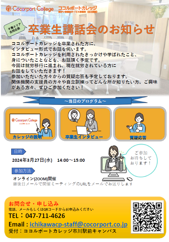 【市川駅前キャンパス】卒業生の講話会やります👩💻🧡👩💻