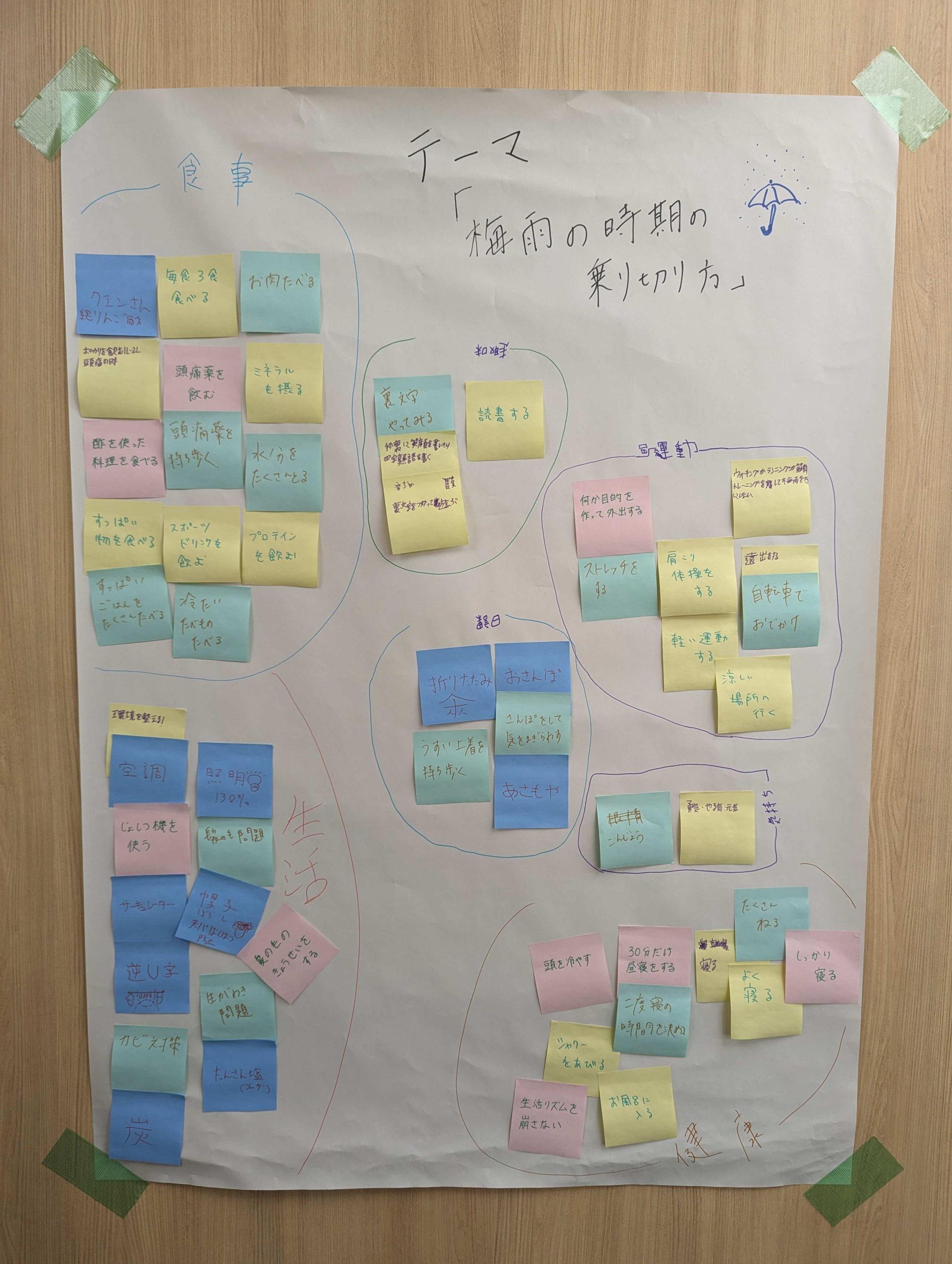 そんな梅雨を乗り切る方法について、ブレインストーミングで考えてもらいました。