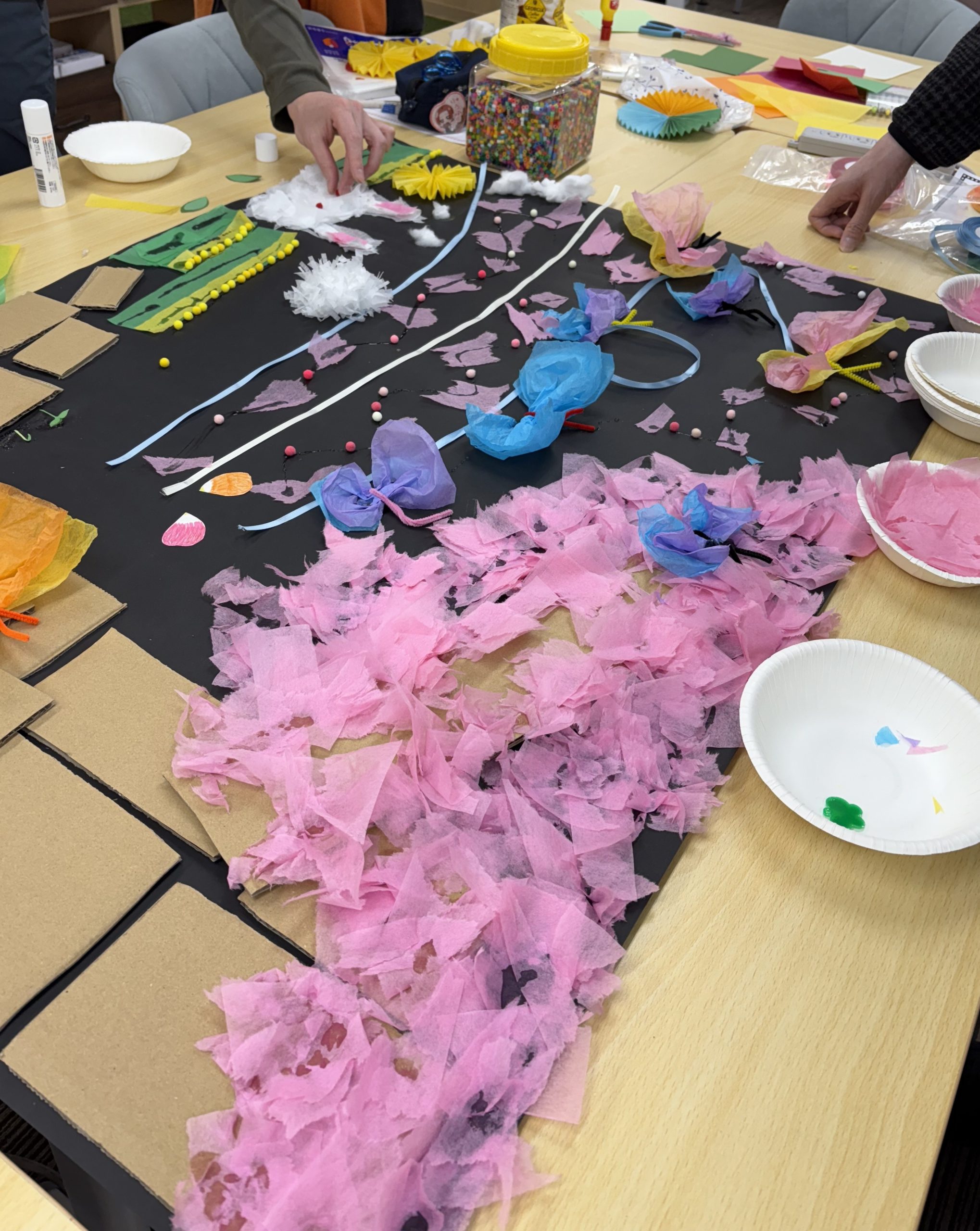 春の暖かい日差しが伝わってくる、色とりどりで優しい作品の完成です!!