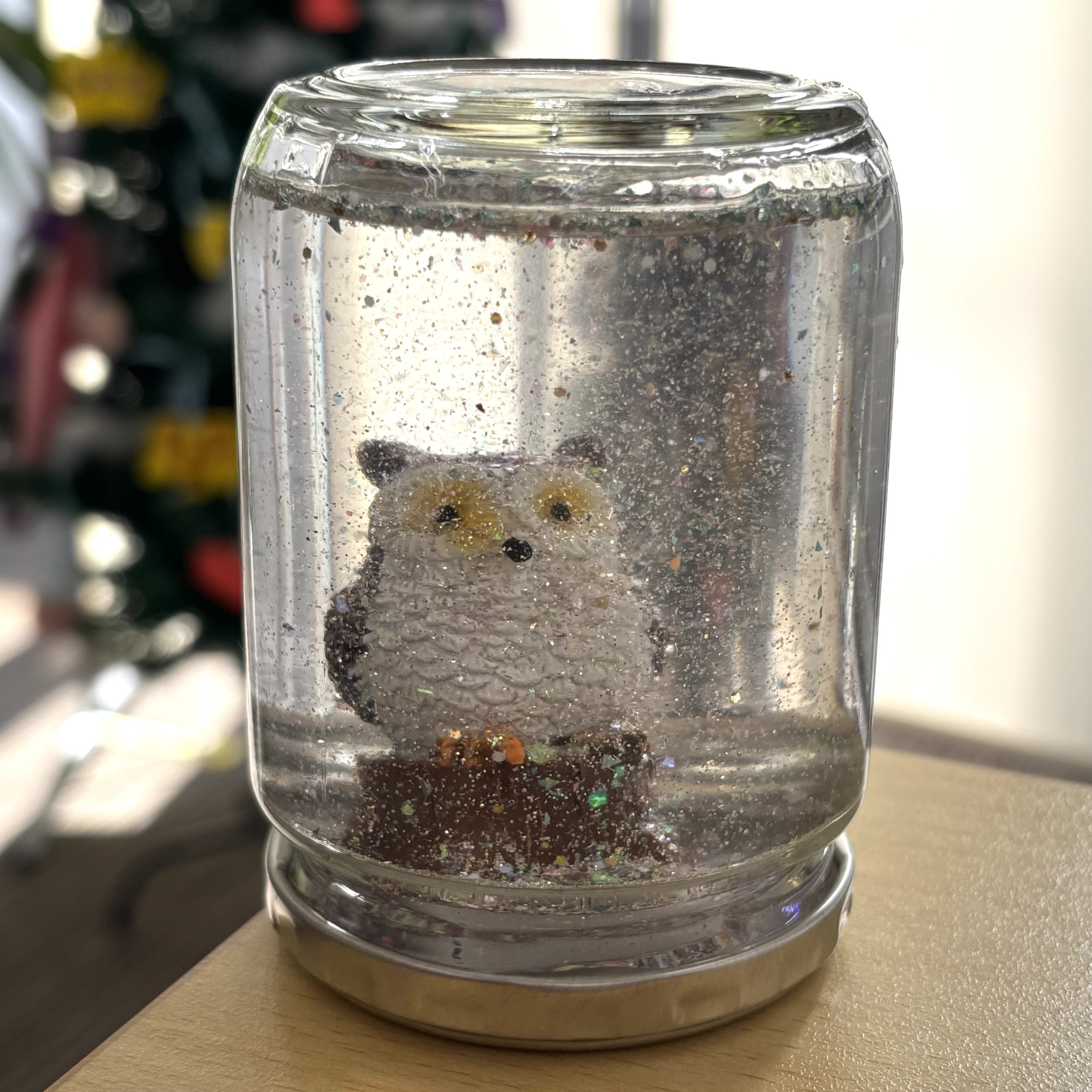 👆最後はラメをたくさんつかって「夜の森」をイメージしたスノードームです🌌🦉