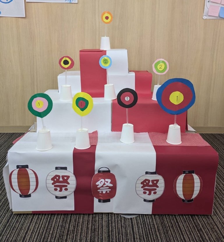 午前中は、トランプ大会・射的・クイズを行いました!その中から射的をご紹介🎯