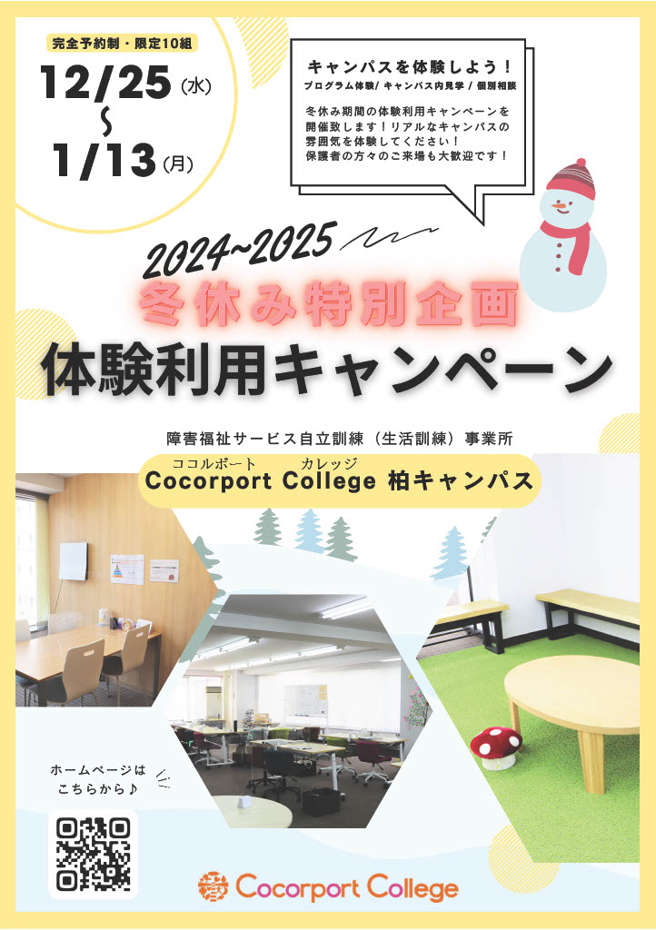 【柏キャンパス】冬休み特別企画⛄「キャンパス体験利用キャンペーン」