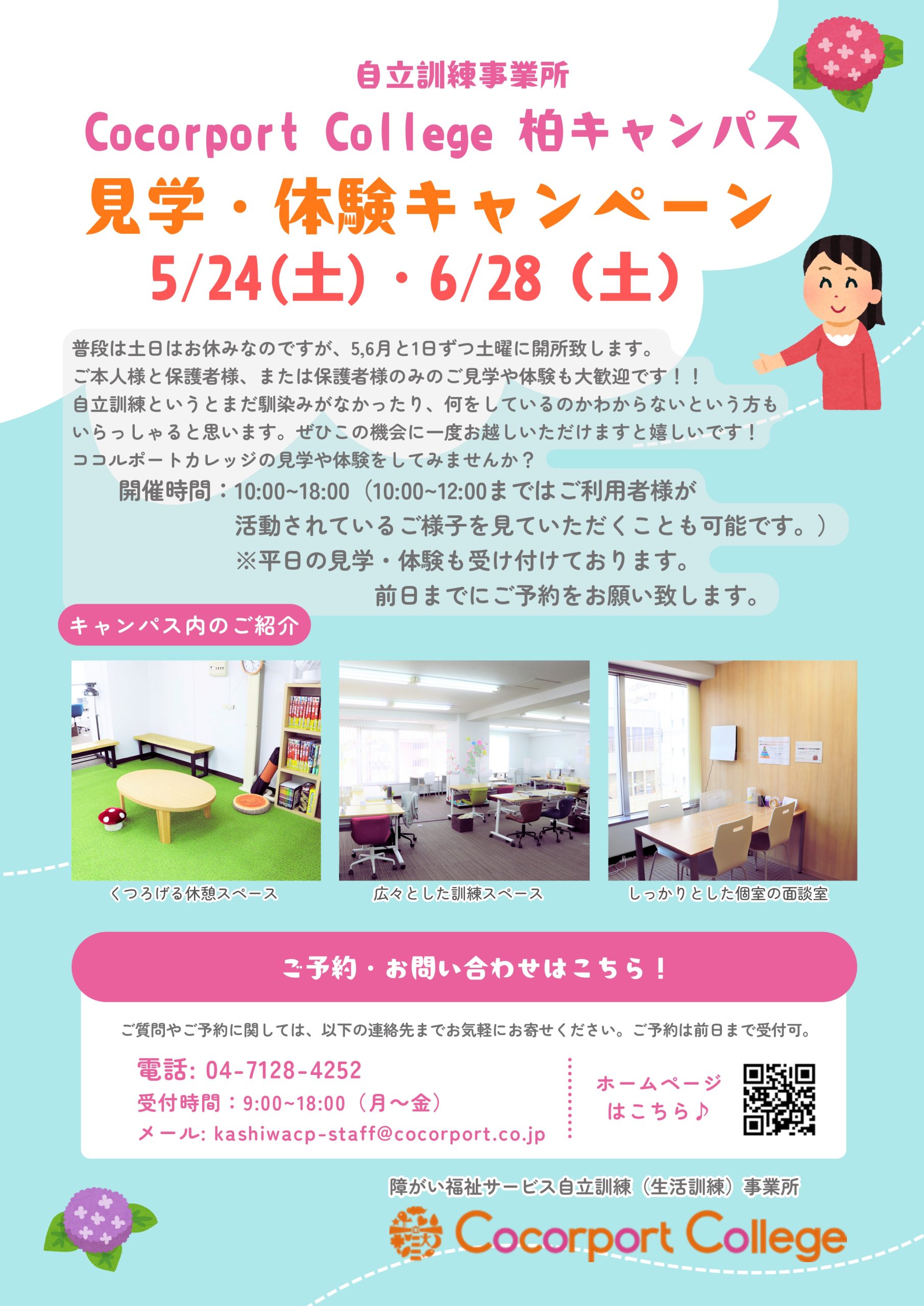 【柏キャンパス】土曜日開所 見学・体験キャンペーンのお知らせ