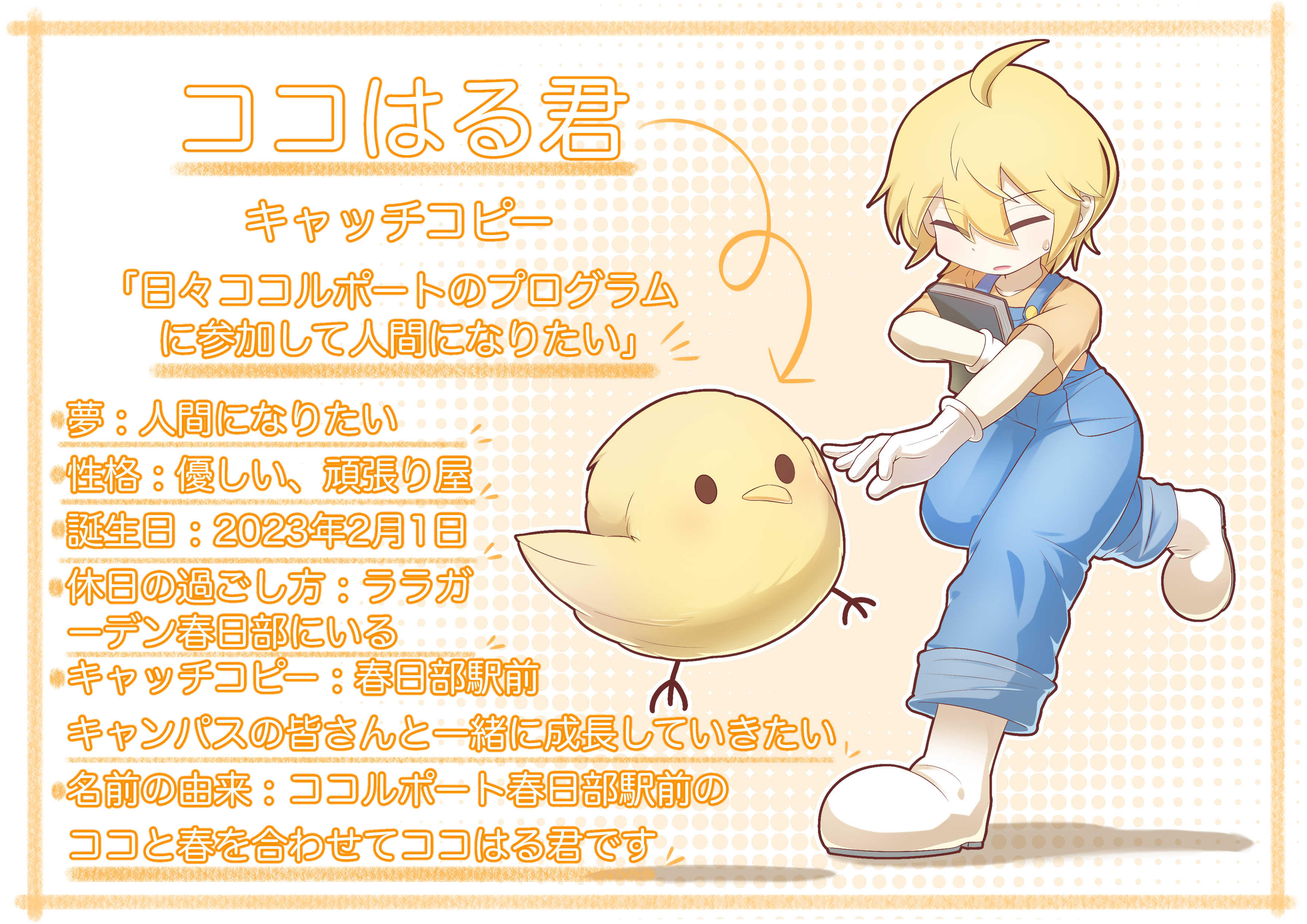 容姿・名前・イラスト・夢・性格・キャッチコピーなどを話し合い、「ココはる君」が誕生しました🐣👏