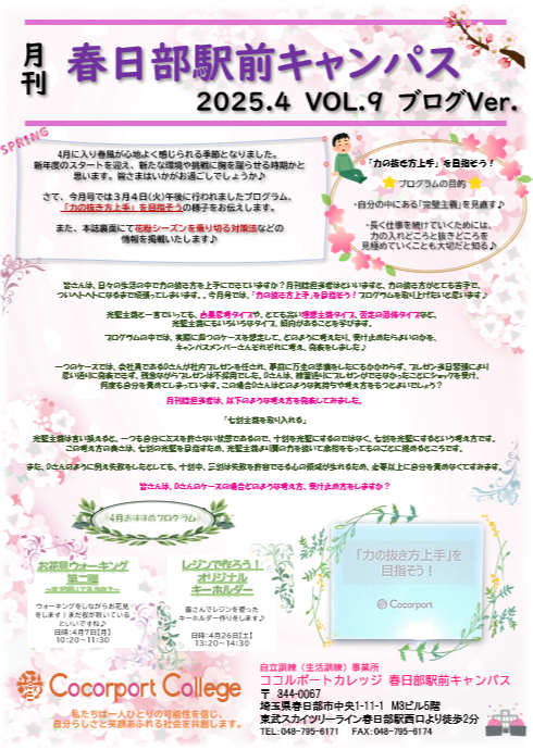 月刊誌の表面では3月4日(火)午後に春日部駅前キャンパスにて行われましたプログラム、「力の抜き方上手」を目指そう!を取り上げました♪