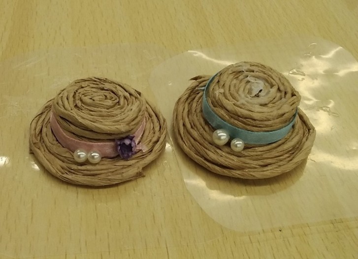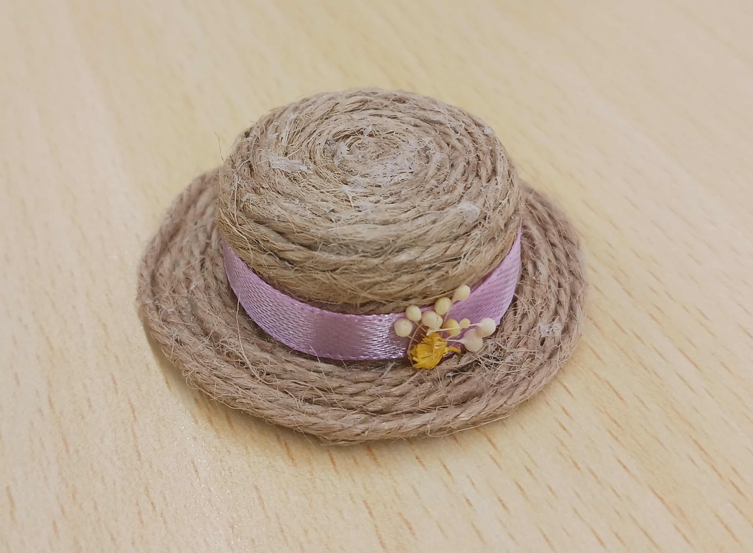 麦わら帽子のつばの部分を好きな大きさまで巻き終えたら、飾りつけをして完成です!👏✨