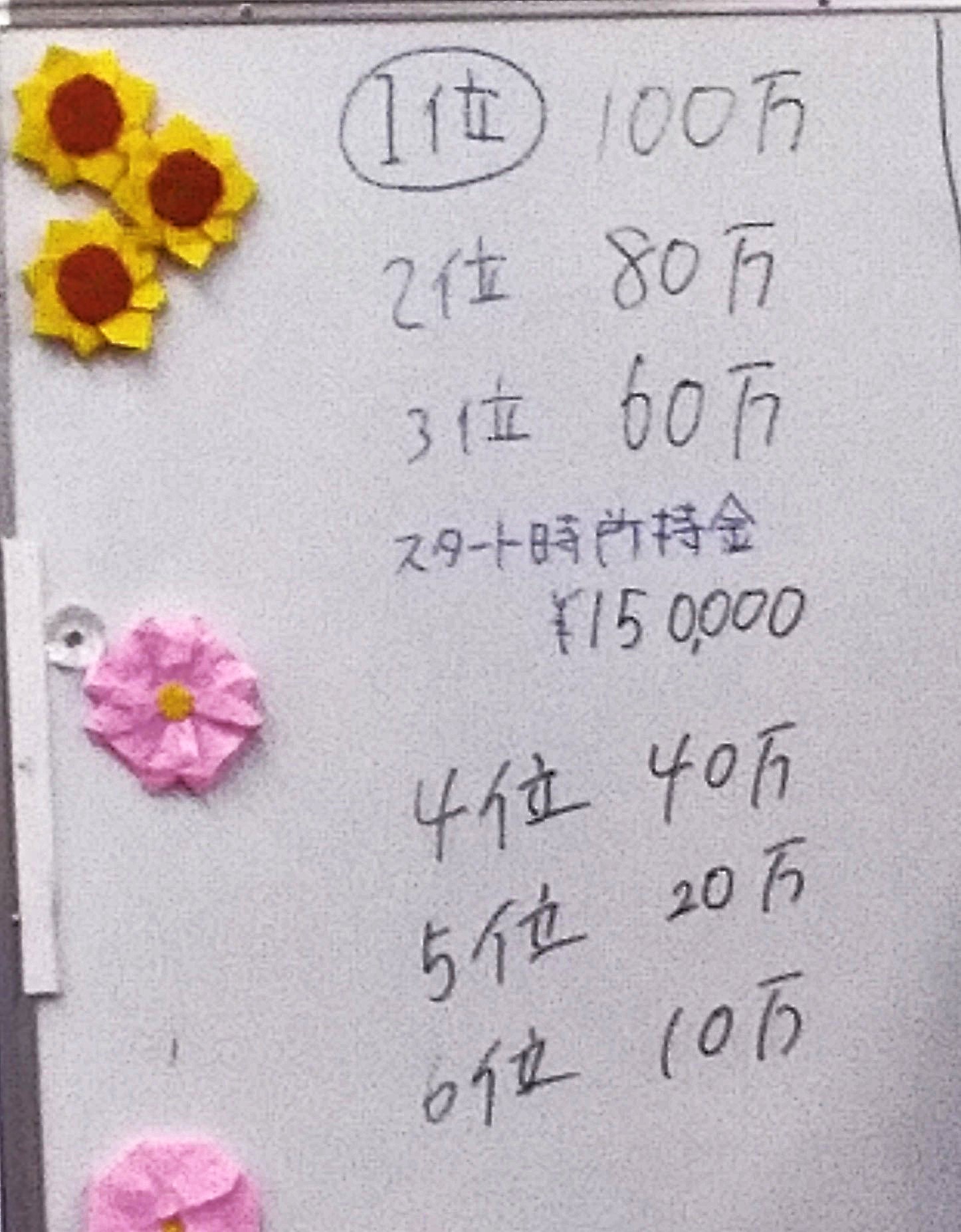 ゴール時の所持金にプラスして、1位でゴールをするとボーナスが100万、2位は80万、3位で60万貰えます。合計の所持金の額が一番多い参加者が優勝となります🏅