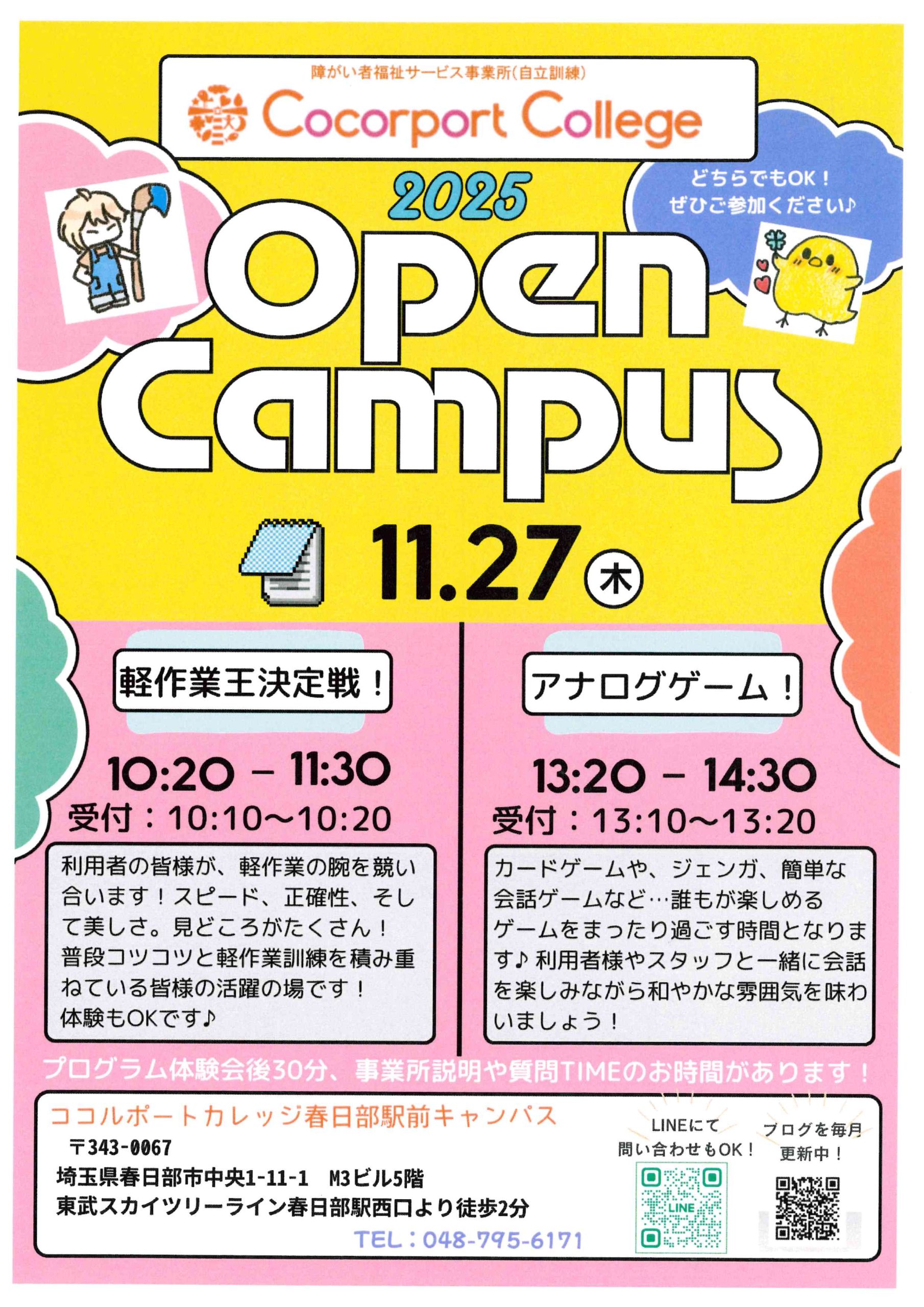 🍁🍁🍁2025年11月のプログラムと11月27日(木)オープンキャンパスのご案内🍁🍁🍁